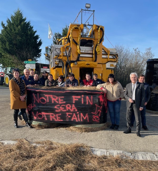 Le 29 janvier 2024, Alain Duffourg, sénateur du Gers, a effectué une visite à EAUZE et à DEMU en compagnie de sa suppléante Isabelle TINTANE, maire de Cazaubon-Barbotan-les-Thermes, afin d’apporter son soutien aux agriculteurs qui traversent une période de grande souffrance. Étaient également présents Monsieur Xavier DUFFAU, Président des Jeunes Agriculteurs, Madame Muriel PELIZZA, Présidente de la FDSEA, Monsieur Philippe SOULES, membre de la Coordination Rurale, ainsi que de nombreux agriculteurs.